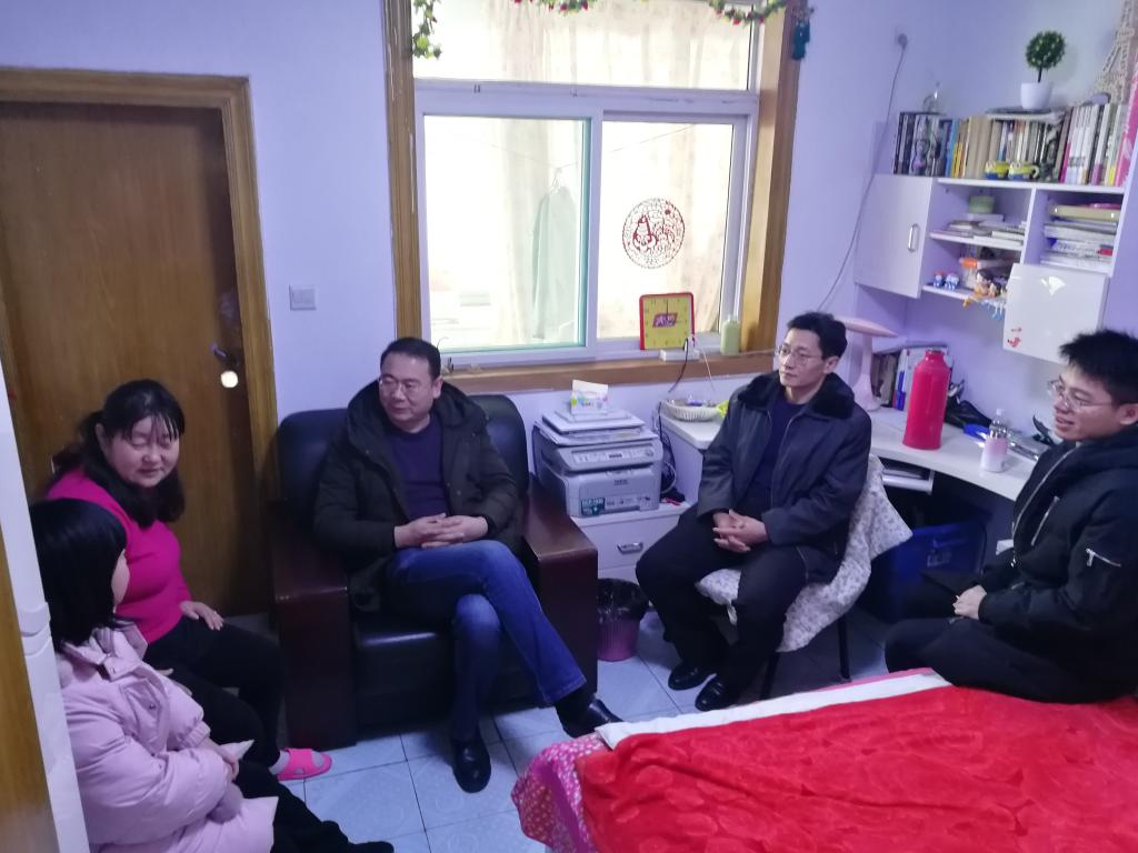1�30日上午,经济学院党委书记吴红文、副书记任海伦,辅导员周新秀来到位于济南市市中区二环南路2014级学生李晓雅家中。李晓雅是我院优秀学生的代表,中共党员,曾获省级优秀毕业生、校长奖学金,多次获一等奖学金、校优秀学生干部、优秀学生、优秀团员等,曾任团支书。作为专业排名第一名和推免考试第一名的获得者,她收到了暨南大学硕士研究生推荐免试入学资格,却因母亲身体不好拒绝这一机会选择成为考研大军中的一员。领导老师们就李晓雅的生活、学习和考研情况与家长及学生进行了亲切交流,鼓励并支持学生继续深造,以扩展知识视野,提高学术水平,增强就业竞争力,并介绍了目前国内高校研究生的奖励办法、额度和科研激励政策�
