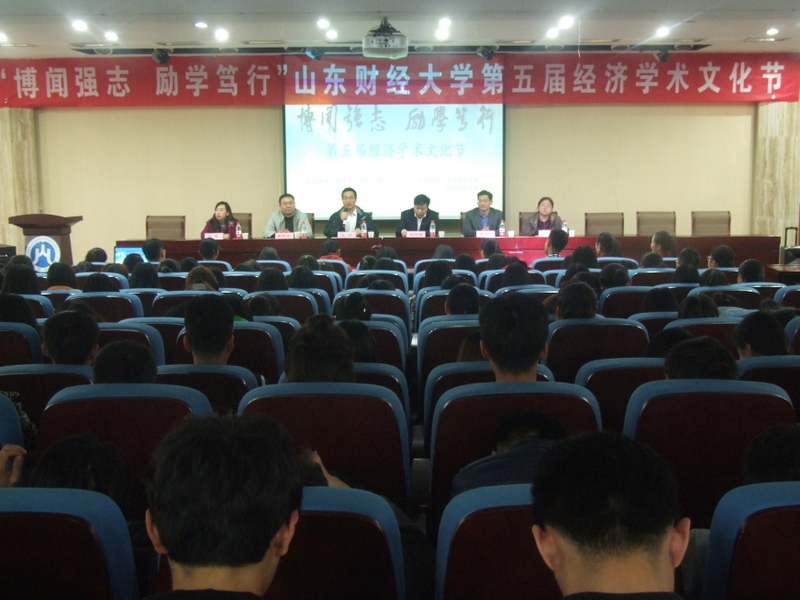 (通讯员:付雯李雨桐)3�23日下�14:00,由校学生工作部(处)、校团委、经济学院主办,经济学院团委、学生会承办的“博闻强志,励学笃行”山东财经大学第五届经济学术文化节开幕式于圣井校区敏行楼多功能报告厅举行。校学生工作处处长王剑、校团委书记刘奇耀,经济学院党委书记吴红文、副书记任海伦,辅导员付雯、裴斐出席,2015�2016级学生代表到场参加,开幕式由任海伦主持�