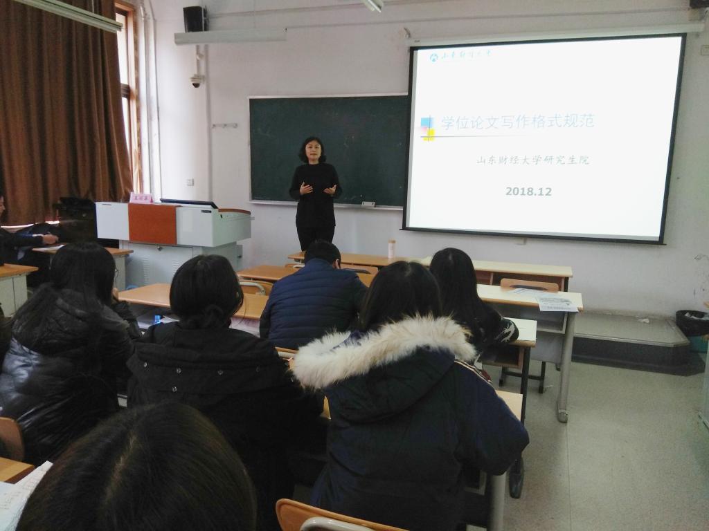 为保证学位论文质量,规范论文格式�12�6日下午,我院2019届毕业生学位论文写作规范培训会在舜耕校区举行。研究生院王丽萍副院长受邀开展培训,拟于2019年毕业的博士、硕士研究生和部分其他年级的研究生共�40余人参加了讲座。会议由经济学院彭留英副院长主持�