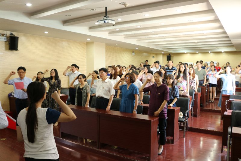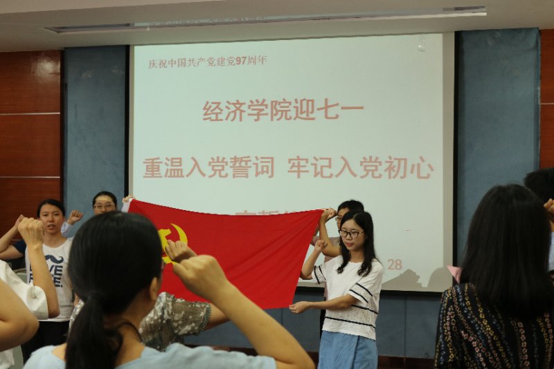 (通讯员:李冰� 刘如� 杨玉琪)为庆祝中国共产党建党97周年,激励全体党员坚定爱党、信党、跟党走的理想信念,经济学院�2018�6�28日举行“迎七一:重温入党誓词,牢记入党初心”宣誓仪式。经济学院全体正式党员、预备党员参加了本次仪式�