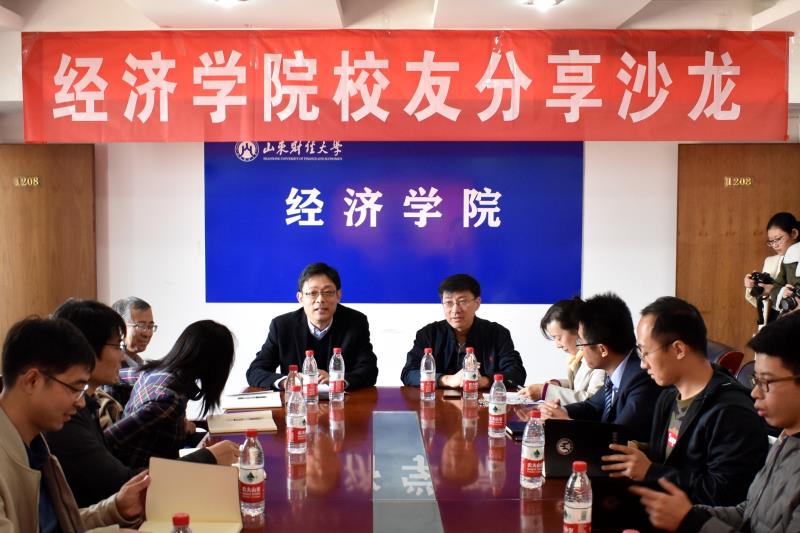 11�9日上午,经济学院于舜耕校区办公楼举办校友分享沙龙。经济学院院长董长瑞,党委书记姜伟,党委副书记高峰、仵颖涛,副院长彭留英以及全体辅导员老师出席�
