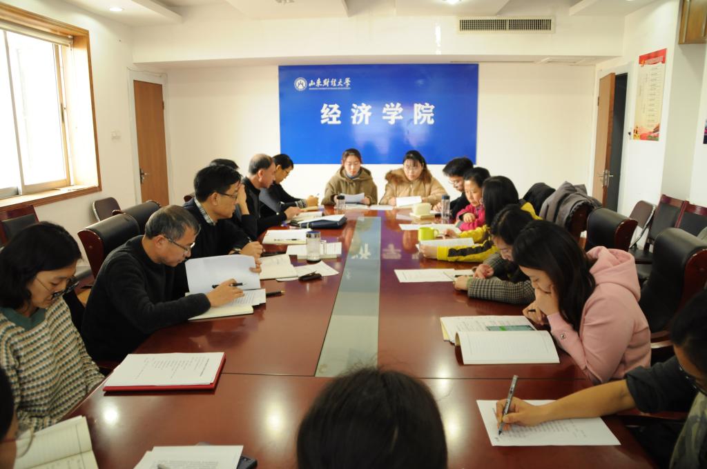 (通讯员:李冰封王佳敏孙俏俏)2019�12�18日下午,经济学院在舜耕校区办公楼1208召开学习贯彻党的十九届四中全会精神座谈会。经济学院党委书记姜伟,院长董长瑞,党委副书记高峰,支部书记代表、辅导员代表、教授代表、民主党派代表、青年教师代表、学生党团员代表出席座谈会。会议由姜伟主持�