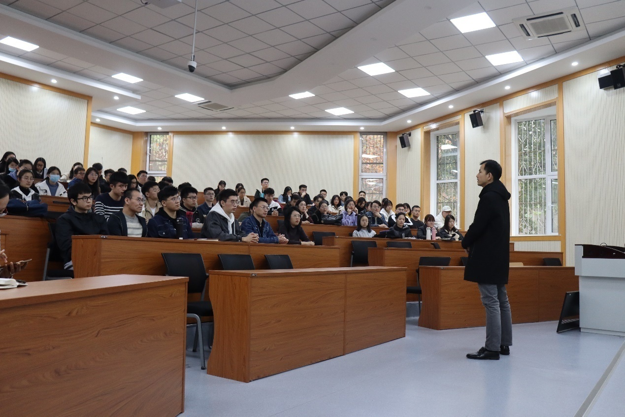 谢申祥介绍了学校和学院有关研究生培养的政策规定,指出了研究生培养中存在的问题和有效应对措施,明确了研究生培养的目标和要求,并对研究生们提出三点期望:一是积极沟通,培养兴趣。主动与导师进行多方面交流,增强专业兴趣,提高学习积极性和独立思考的能力;二是重视科研,参与实践。鼓励同学们积极参加学术会议,定期开展学术讨论,组织优秀青年教师和同学进行成果交流,提高研究生的科研能力;三是身心健康,乐观向上。结合自己的读博经历,提醒同学们注重身心健康,及时疏解压力,保持积极乐观的心态�