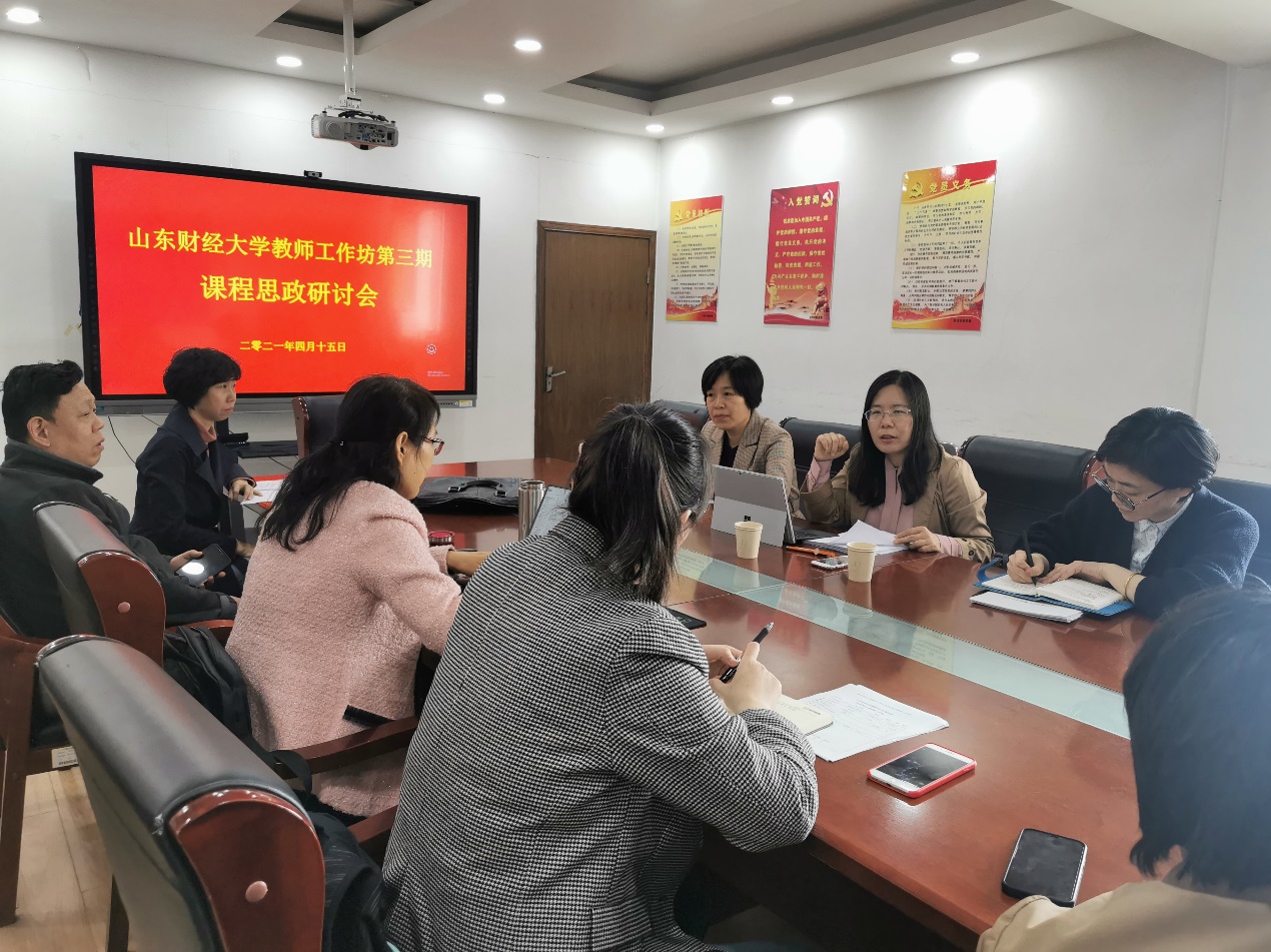 4�15日下午,经济学院邀请齐鲁工业大学教务处李红霞副处长参加经济学院课程思政建设研讨会,山东财经大学教师工作部苏丽娜副部长,经济学院齐杨副院长,以及课程思政建设项目组负责人及成员参加了此次研讨会�