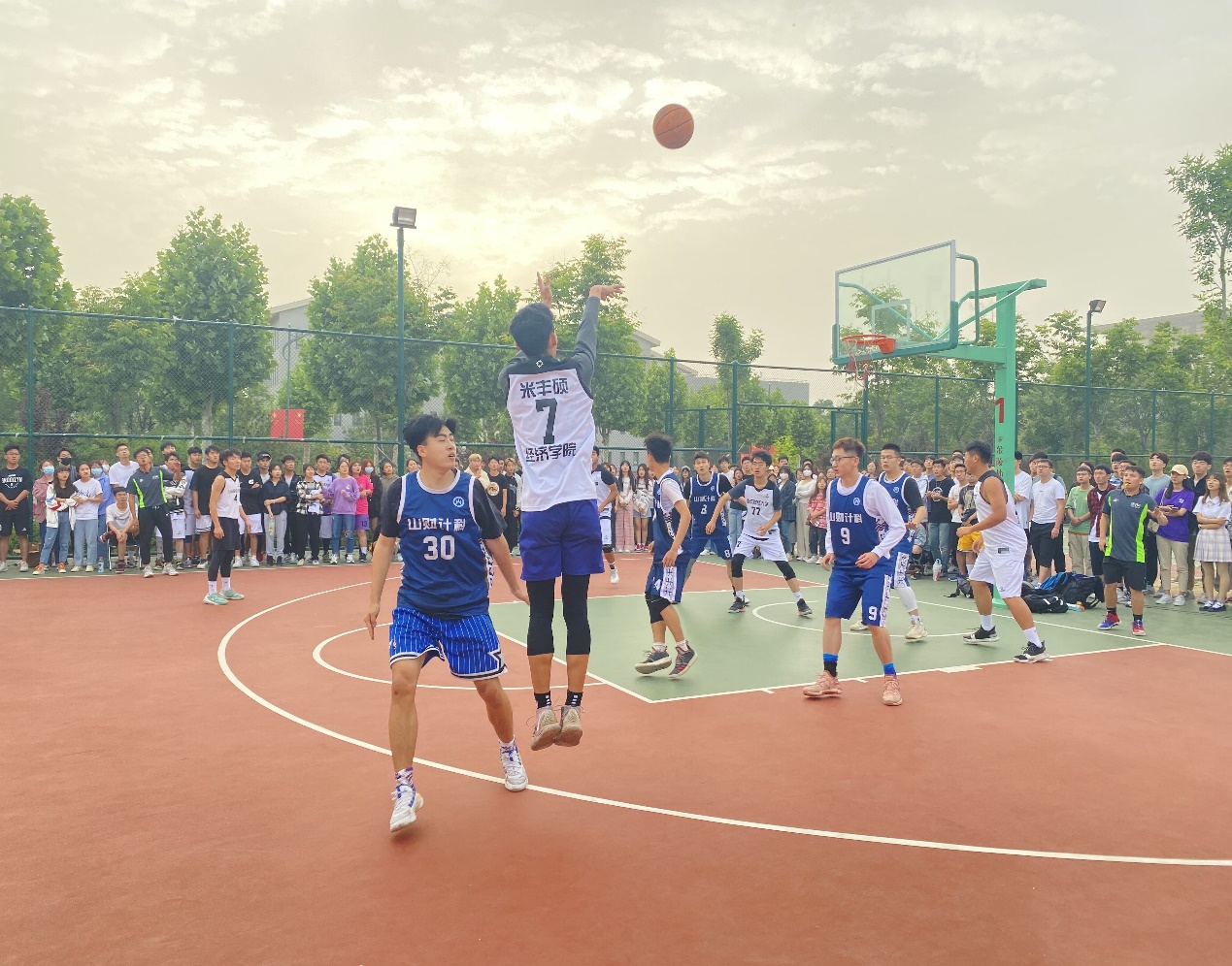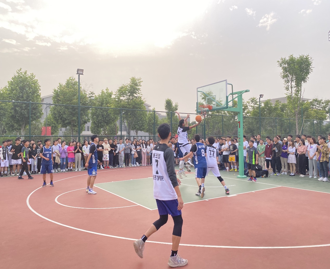 本次篮球赛自5�10日开始,为期两周,以学院为单位,采取淘汰赛制,共14个学院的篮球队参加比赛。我院篮球队斗志昂扬、不甘落后、奋勇争先,�10日和21日战胜了金融学院�17日打败了财政税务学院,以全胜的战绩一路过关斩将,成功挺进决赛�