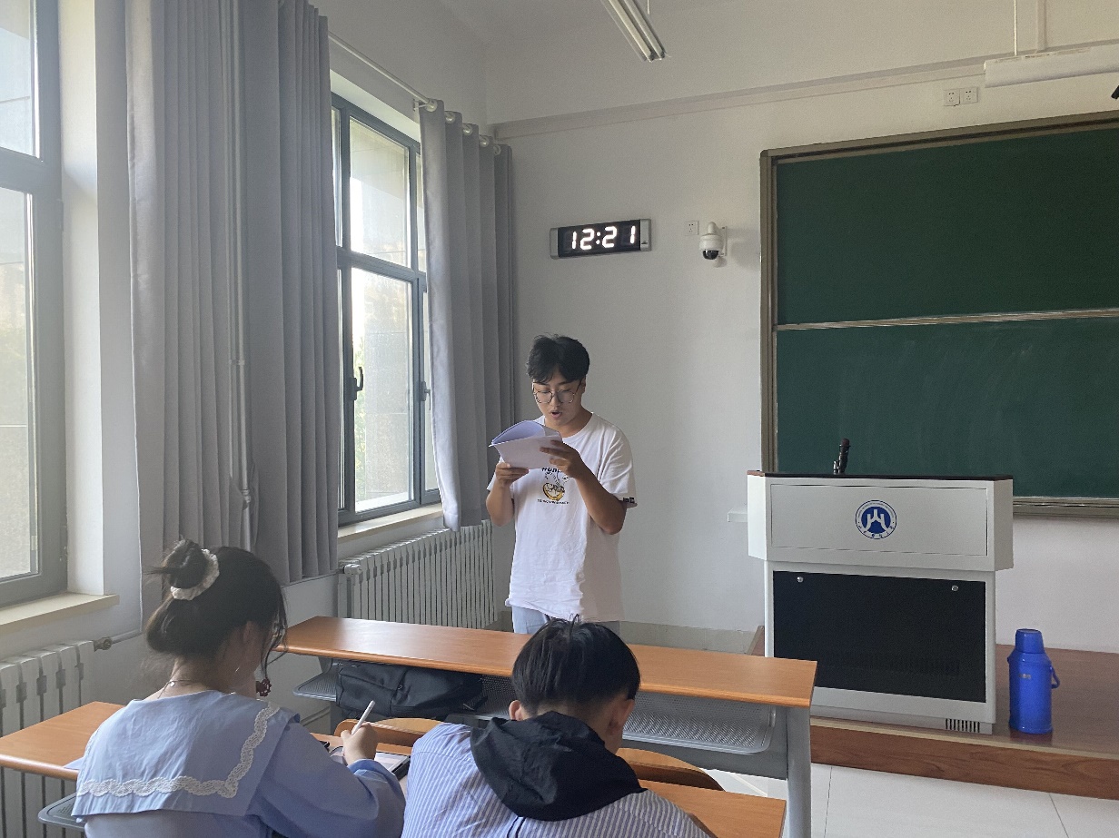 学生会秘书处副秘书长王政宣读《经济学�2021级迎新工作方案》,对场地安排、秩序维持、家长服务、现场宣传、资料发放、引导入住、卫生清扫等多项迎新工作作具体部署�
