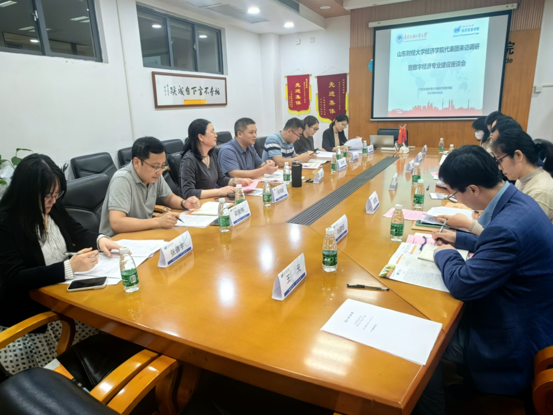 孙楚仁院长对谢申祥副校长一行的到来表示热烈欢迎,他介绍了广东外语外贸大学及经济贸易学院的基本情况,对山东财经大学在人才培养、科学研究、学科建设等方面取得的突出成绩表示赞赏。学院各相关负责人就数字经济专业培养方案、专业特色及发展方向、研究生培养、大学生就业等问题进行了细致介绍�