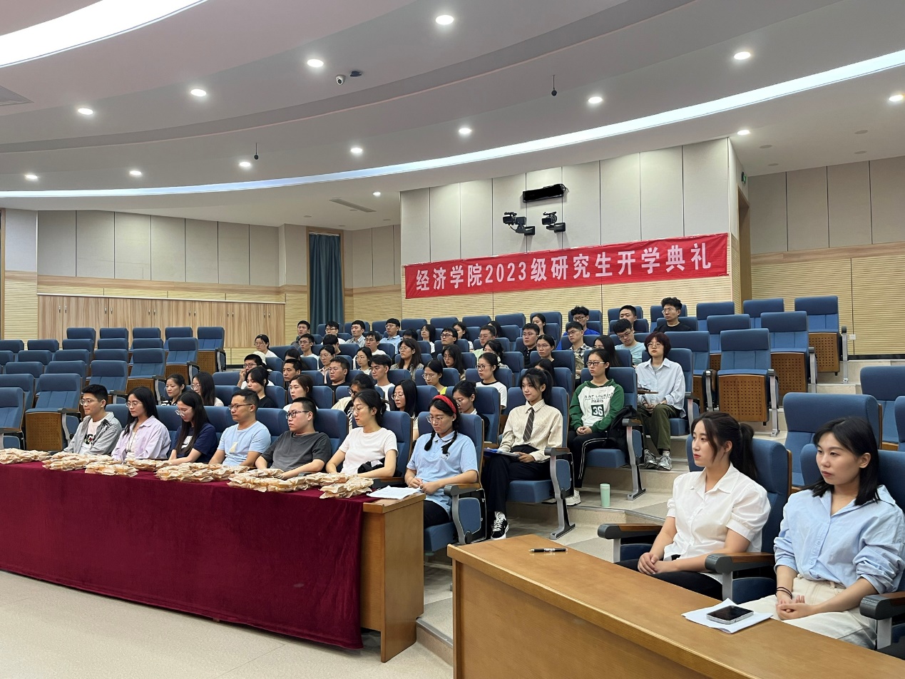谢申祥向2023级研究生表示衷心的祝贺和热烈的欢迎,介绍了学校七十余年的历史变迁,以及学院历史、教师队伍、人才培养、学科专业、教学科研等方面内容。他表示,过去的成绩是鞭策我们前进的动力,新的学期,新的开始,也给我们带来了新的挑战,孕育着新的希望与憧憬。他对2023级研究生提出三点希望:一是胸怀星海,立德修身,做一个坚守的人。同学们要树立高远志向,明确个人发展方向,成为勇担时代重任的新青年。二是深耕细作,扎实才干,做一个刻苦的人。同学们要努力钻研,找到适合自己的科研之路,用经济学的分析范式来回应时代之问。三是勇登高峰,不懈奋斗,做一个勇敢的人。在研究生阶段需要接过使命与担当,扎根祖国大地,回应时代呼唤,在实践中检验答案,在总结中得出理论。