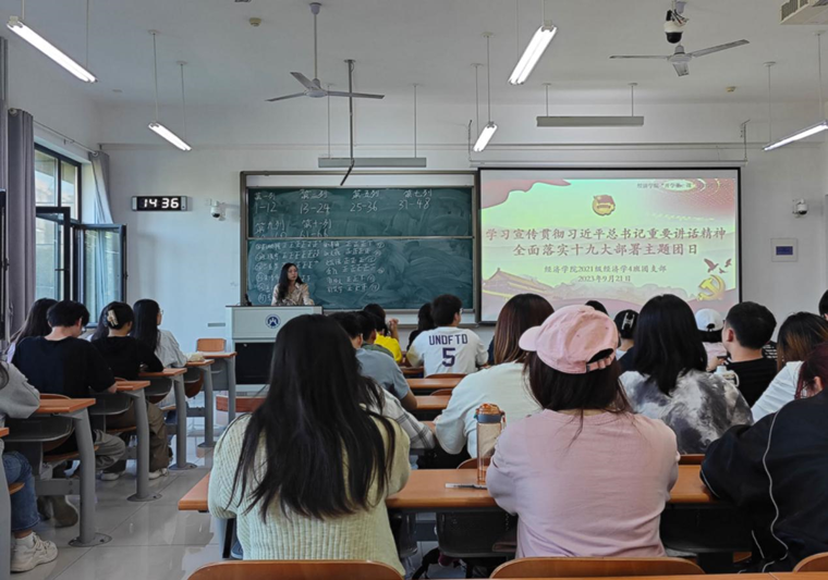 学院团委高度重视,立足组织性质和团员青年特点,坚持组织化学习、贯通式学习、实践中学习的基本做法,依据《共青团中央关于深入学习宣传贯彻习近平总书记重要讲话精神全面落实团十九大部署的通知》要求,广泛发动、周密部署、科学安排,以本次主题团日为依托,开展多形式、分层次、全覆盖的学习教育和培训。各个团支部由院团委辅导员老师主持,围绕习近平总书记重要讲话精神,查阅相关图文、视频资料,进一步了解习近平总书记重要讲话精神的内涵、重大意义,并总结出四大要义:一、牢牢把握新时代中国青年运动的主题。坚持问题导向,敢于刀刃向内;坚持目标导向,坚定不移走好新时代中国特色社会主义发展道路。二、引导广大青年坚定听党话、跟党走的政治信念。深化新时代青年马克思主义者培养工程,成为具有忠诚政治品格、浓厚家国情怀、扎实理论功底、突出能力素质、过硬斗争精神的青年政治骨干。三、组织动员广大青年在中国式现代化建设中挺膺担当。广大青年应在贯彻新发展理念、构建新发展格局、实现高质量发展中创先争优、担当作为。四、全面从严管团治团,锻造紧跟党走在时代前列的先进组织。坚持高标准严要求,加强团干部和团员队伍组织建设。各团员青年分享自己的理解和感悟,提出自己的思考与见解,共同探讨如何将习近平总书记的讲话精神融入到日常学习、生活和工作中。