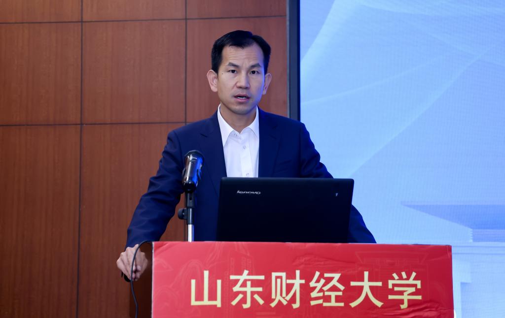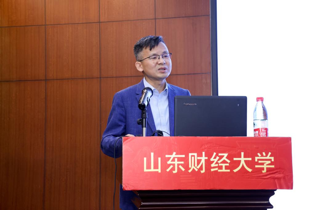 副院长刘建国教授做了题为《数字经济对农业水资源利用效率的影响—以黄河流域九省区为例》的主旨演讲。刘教授指出黄河流域水资源存在水利用效率低、农业污染等困境,随着数字经济的快速发展,数字经济成为提升水资源利用效率的重要途径,刘教授基于柯布道格拉斯函数提出K假设、L假设和α假设,并使用DEA模型和SMB模型对水资源利用效率进行测度,研究发现数字经济对农业水资源利用效率具有显著的促进作用,最后提出要因地制宜、缩小地区之间数字经济发展差距等措施。
