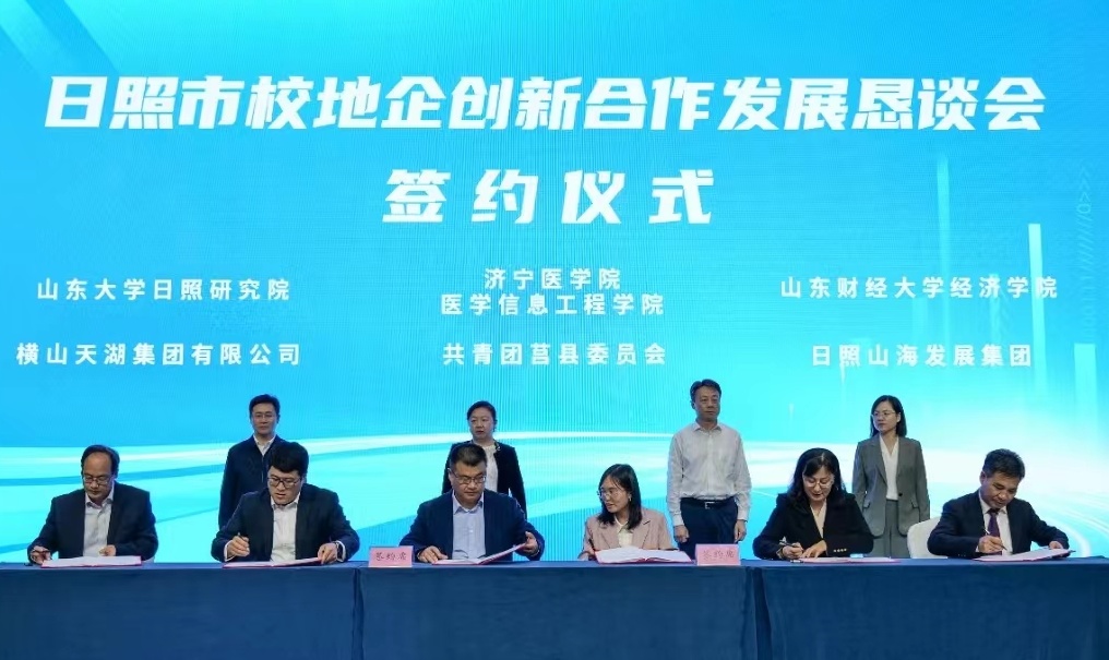 在校地企创新合作发展恳谈会上,陈静代表学院与日照山海发展集团签订了校企战略合作框架,双方同意在文化旅游、康养医疗、市政管理及工程建造等领域促进“校地企”三方联动,在学生实习实践、创新创业、科研合作、成果转化、人才培养交流等方面开展深度合作,合力谱写城市、高校院所和企业多方共赢新篇章。