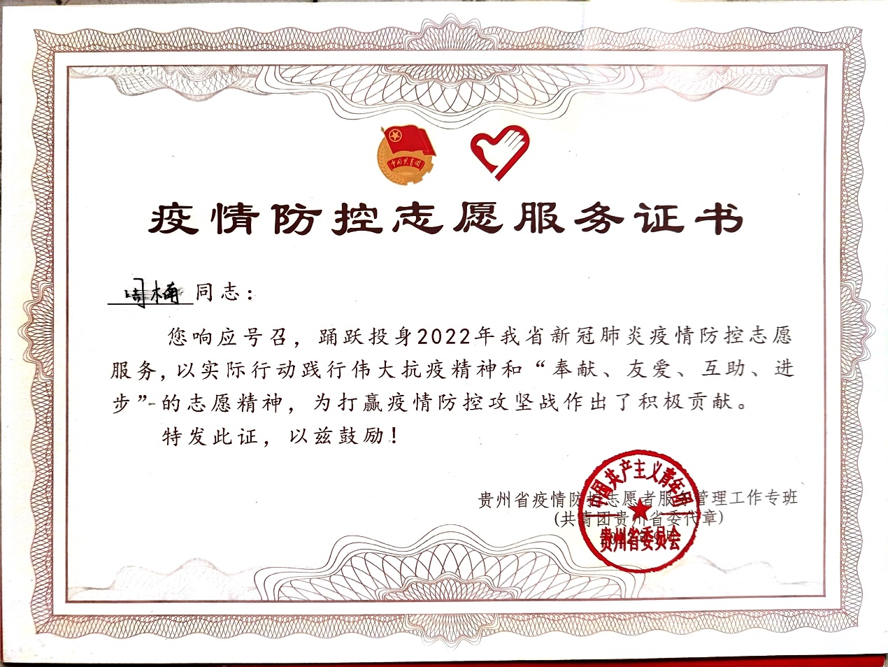 2023级硕士研究生周楠荣获“中国青年志愿者优秀个人奖”。