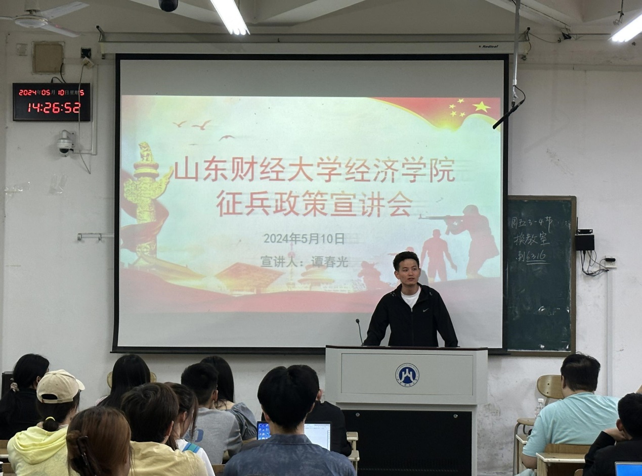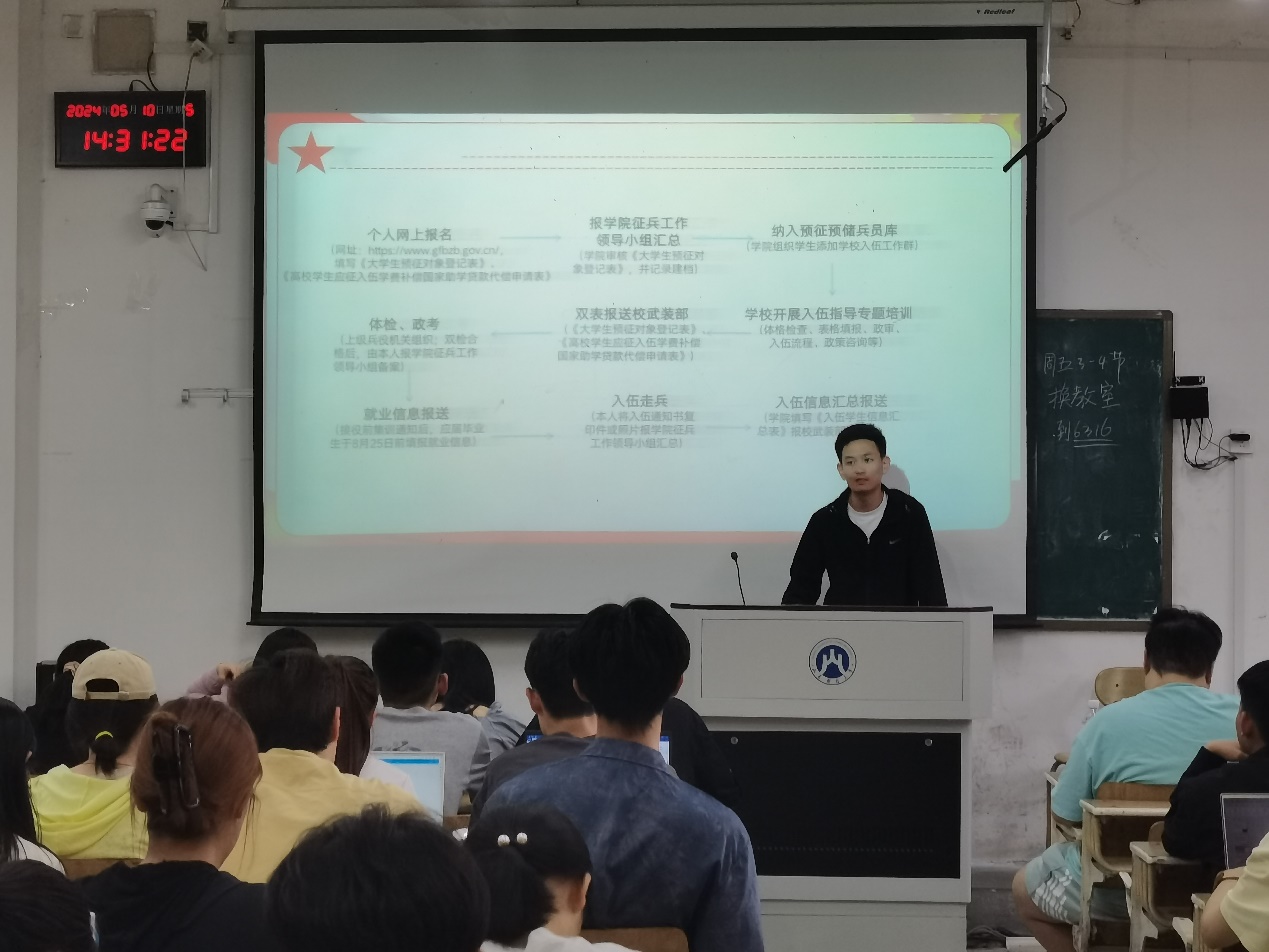 于舜耕校区6号楼举办“有志青年 参军报国”征兵政策宣讲会。宣讲会由一帆视频