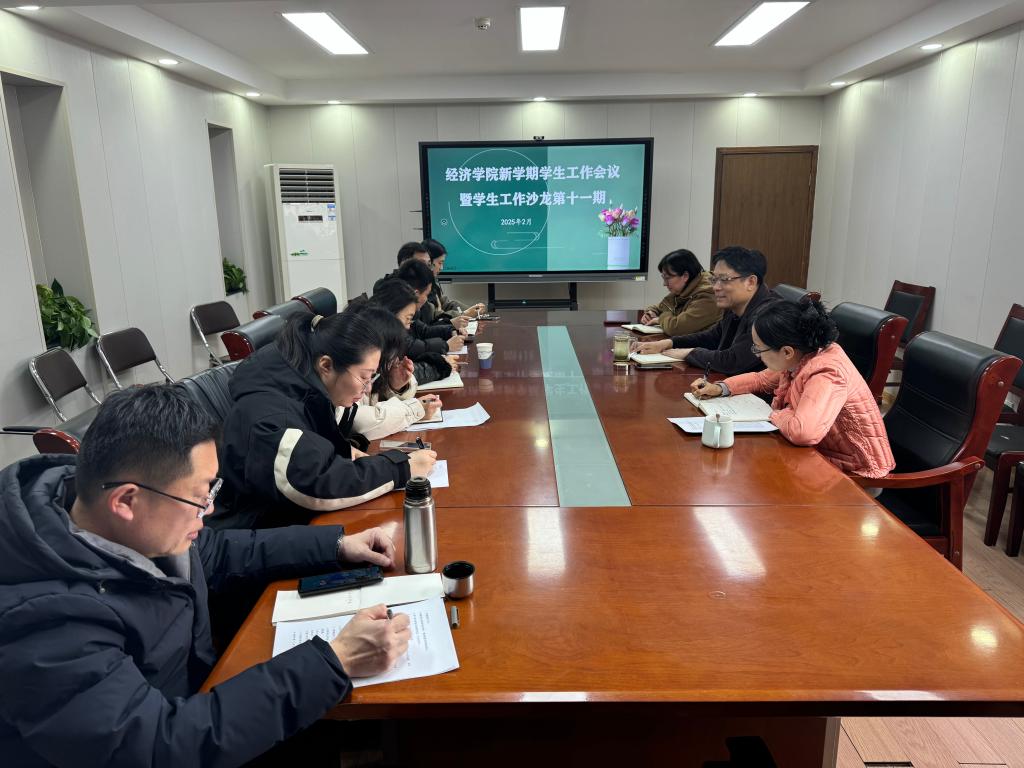 于舜耕校区办公楼1208会议室召开新学期学生工作会议暨学生工作沙龙第十一期。学院党委书记姜伟、副书记李冰封、陈静及全体辅导员参加会议。会议由李冰封主持。
