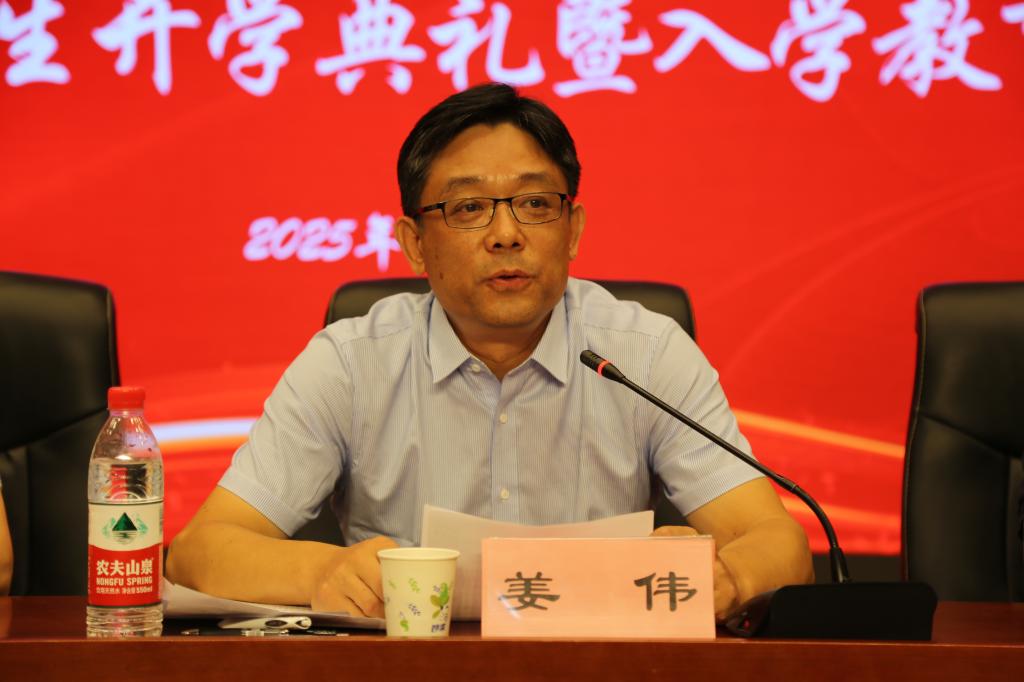 姜伟向来自全国各地的新同学致以诚挚祝贺,介绍了学院以学生为中心、以学风为指引的教学理念,聚焦提升学生综合素质、促进全面成才的工作思路与创新实践,展示学院在学术、竞赛、实践等领域的突出成果。他鼓励新生们要以知识为前行的风帆,锻炼创新实践能力,为未来奠定坚实基础,并向新生提出三点殷切期望:一是要胸怀梦想,志存高远。要以梦想作为指引前行的灯塔,以高远的志向作为不断前进的动力,让青春的梦想与时代的步伐同频共振;二是锤炼本领,追求卓越。要在锤炼本领的道路上越障排险、逢山开路,以追求卓越的气魄与勇攀高峰的斗志迎接挑战,让勤奋学习成为青春远航的动力;三是涵养厚德,担当大任。要以财大精神为根脉,潜心涵养品德修为,主动扛起时代赋予的重任,做到与民族发展同呼吸,与时代脉搏同步伐。他勉励同学们涵养品格、德才并重,在时代大任的浪潮中,争做有理想、敢担当、能吃苦、肯奋斗的新时代好青年,挥洒青春,圆梦财大,共同书写新时代的光辉篇章。