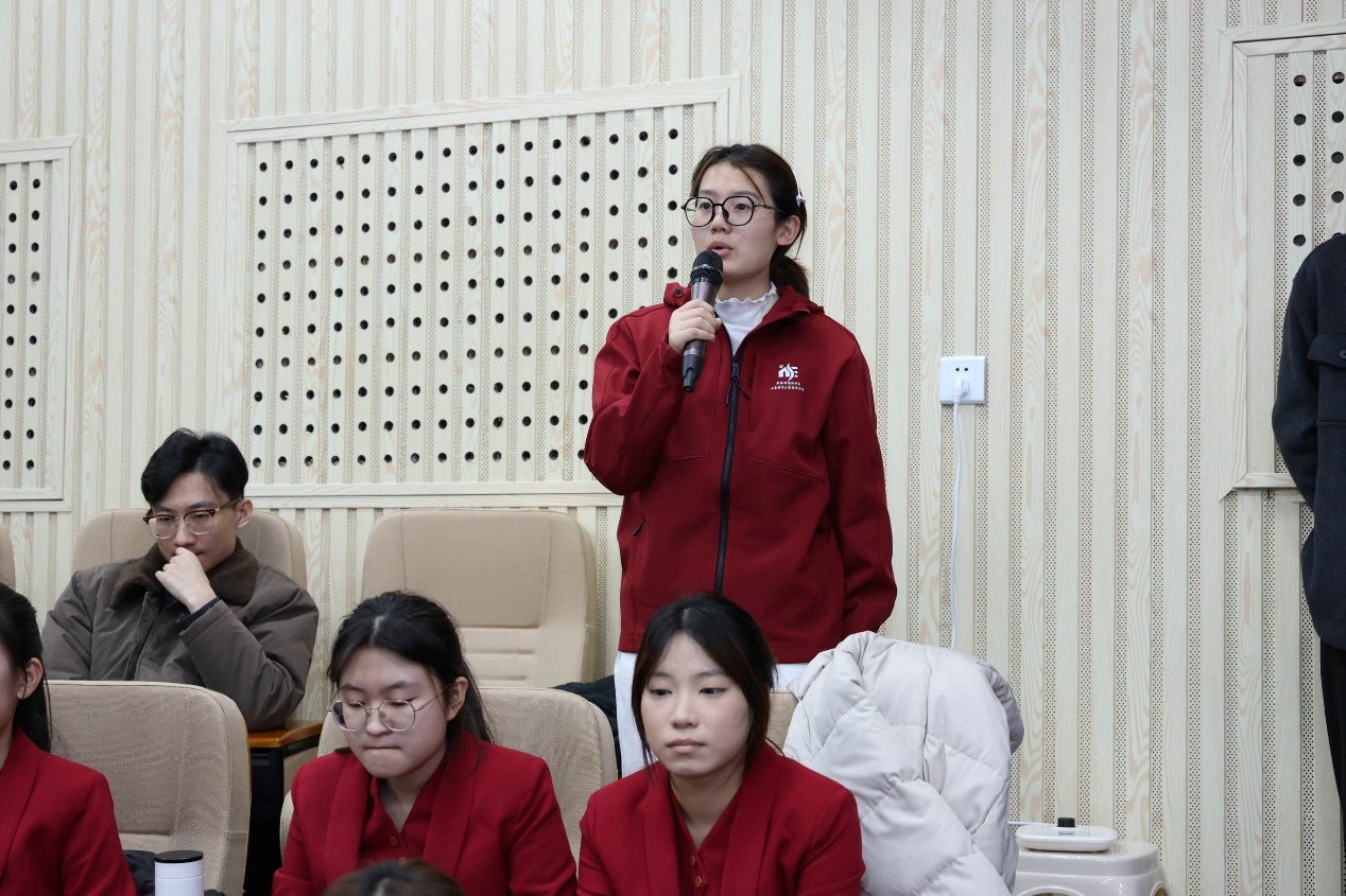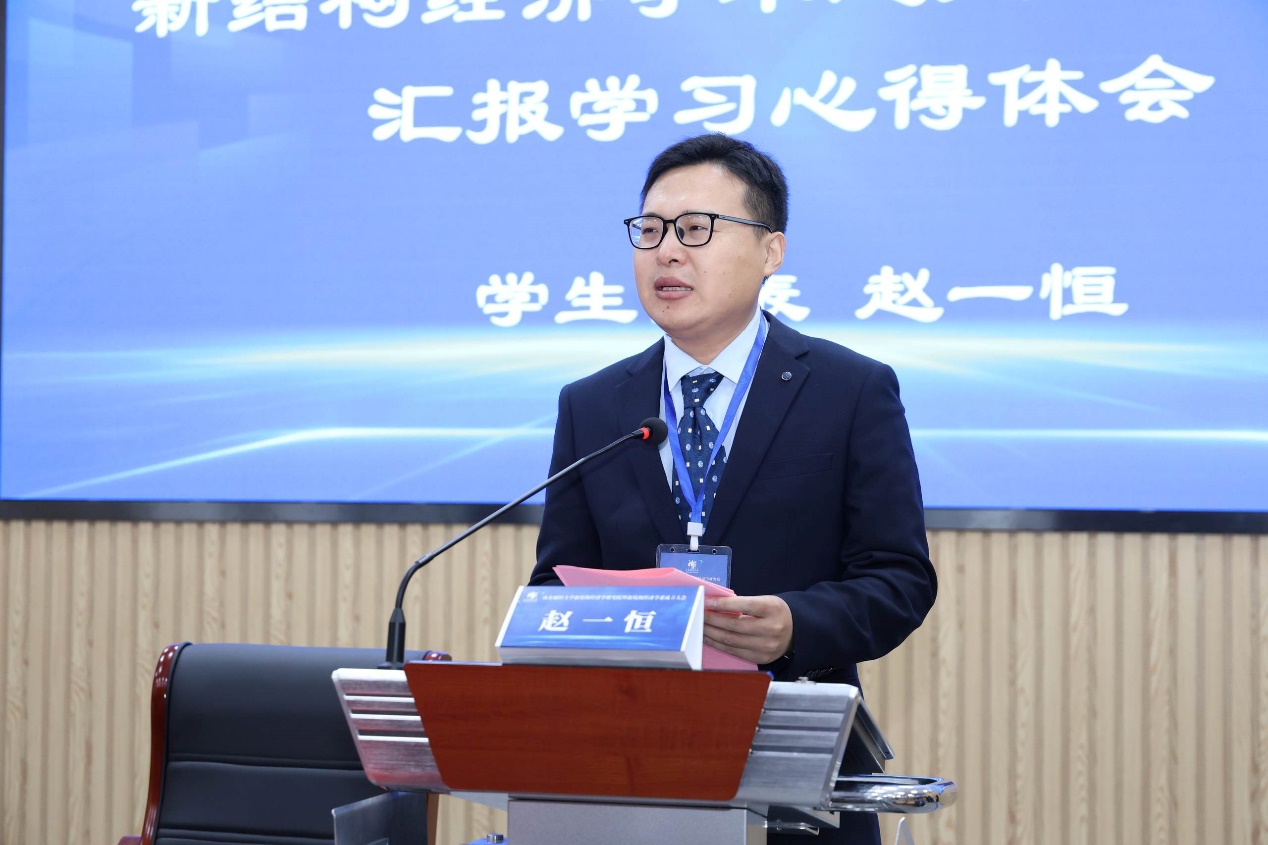 随后,2024级新结构经济学卓越人才实验班的赵一恒同学作为学生代表发言。赵一恒同学在汇报中回忆了自己与新结构经济学的不解之缘,分享了自己收到林毅夫教授回信时的激动和喜悦之情,并代表全班同学向林毅夫教授及各位领导老师做出承诺。他表示,作为新一代新结构经济学人,他们有勇气,也有信心,能够接过发展新结构经济学的接力棒,继续谱写这门学科的崭新篇章,为实现中华民族伟大复兴,构建人类命运共同体,贡献属于新结构经济学人的青春力量。