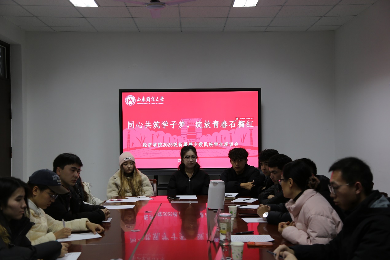 在章丘校区7213会议室举办2025级新疆籍少数民族学生座谈会。一帆视频