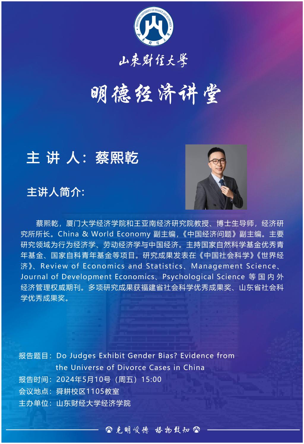 一帆视频 明德经济讲堂:Do Judges Exhibit Gender Bias? Evidence from the Universe of Divorce Cases in China