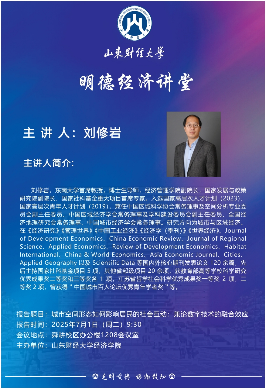 明德经济讲堂:城市空间形态如何影响居民的社会互动:兼论数字技术的融合效应