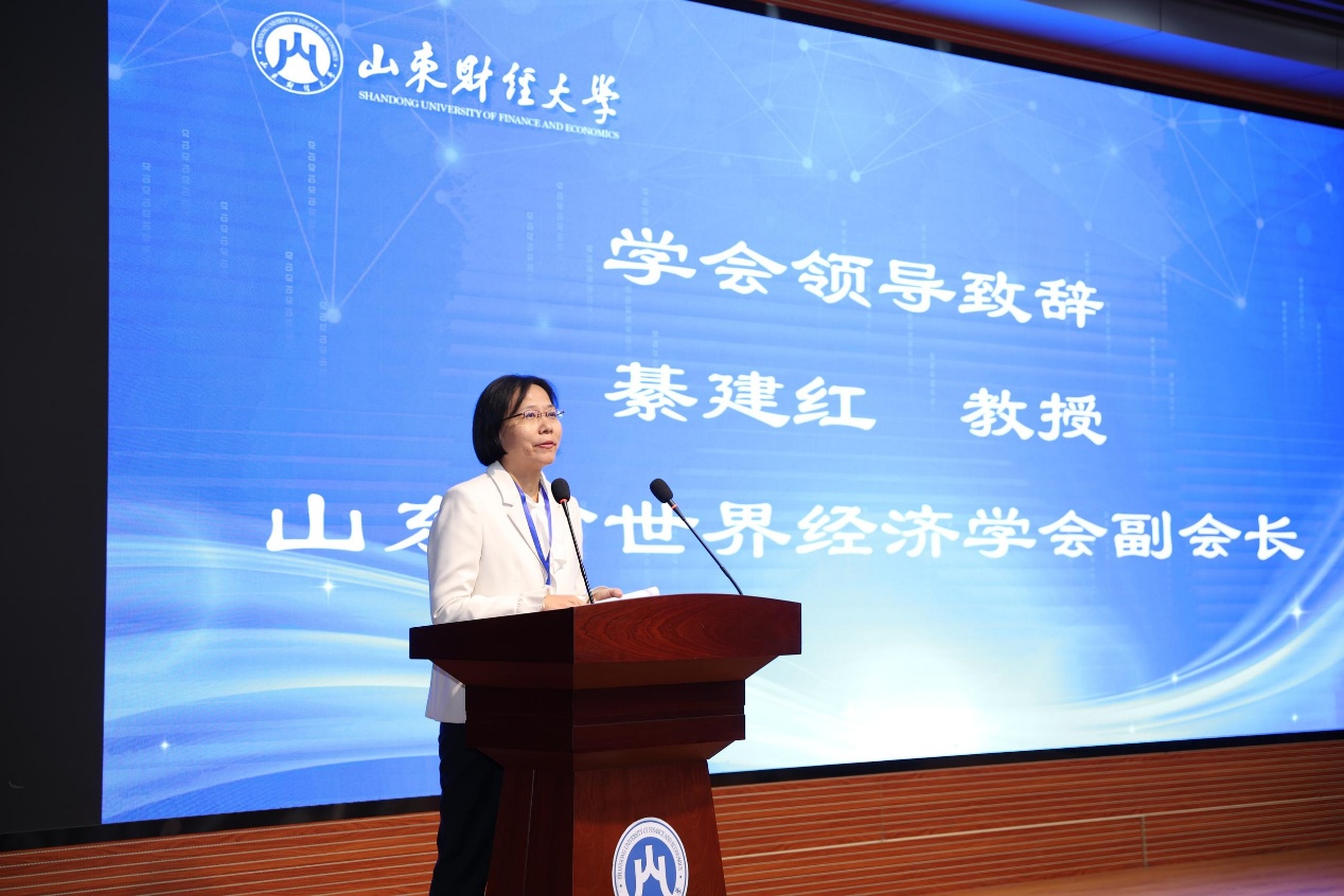 綦建红教授代表山东省世界经济学会向百忙之中莅临本次年会的各位领导及专家学者表示最热烈的欢迎。她指出,在当前世界变乱交织、动荡加剧的外部环境下,本次年会的举办价值彰显,期望本次年会能够体现观点交锋、学科交融以及理论与实践交织三大特征,所呈现的研究成果能够进一步凝练出兼具理论价值与现实可操作性的中国智慧。