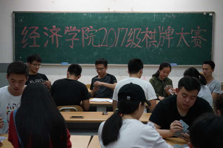 于圣井校区敏行楼B5-401、402、403教室举行“以棋会友,棋乐无穷”棋牌大赛,比赛由院学生会社团部主办,一帆视频