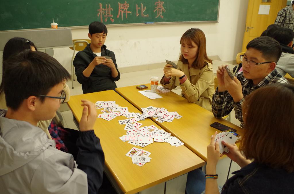 大赛分为棋类和牌类两项。棋类包括象棋、五子棋和跳棋,象棋和五子棋2人一组,跳棋2-3人一组,进行对弈。牌类分为个人赛和团体赛,共有95人参加个人赛,团体赛分为8组同时进行。比赛选手遵循“友谊第一,比赛第二”的原则,机智周旋,沉着应对。个人赛选手角逐激烈,思考睿智,静观其变,稳中取胜;团体赛选手默契配合,思维缜密,展现出不凡的博弈水平和合作精神。比赛现场气氛火热,精彩绝伦的比拼赢得现场观众的阵阵掌声。经过初赛和决赛的重重选拔,2015级资源与环境经济学一班释磊、2015级经济学一班王腾、2016级经济学一班庞乐平分别获得五子棋组冠、亚、季军;2015级资源与环境经济学一班王冬阳、2015级资源与环境经济学一班释磊、2016级经济学三班赵明明分别获得跳棋赛冠、亚、季军;2015级资源与环境经济学二班吴佳宝、2016级经济学四班韩振川、2016级经济学二班李成远分别获得象棋组冠、亚、季军。2015级经济学三班郝政林、2016级资源与环境经济学二班孟金成和2015级资源与环境经济学一班赵鑫分别获个人赛冠军、亚军和季军。2015级经济学一班周鹏辉等人获团体赛冠军,2016级经济学三班刘一奇等人获团体赛亚军,2016级经济学二班黄海涛等人获团体赛季军。