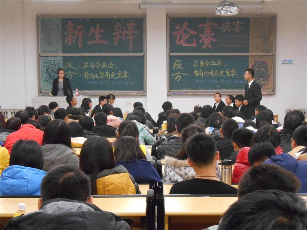 新生辩论赛历时三周,分为初赛、复赛和决赛三个阶段,几番激烈的唇枪舌战后,经济学二班和经济学三班在初赛、复赛中脱颖而出。决赛双方就“在当今社会,情商与智商哪个更重要”展开辩论。双方首先进行了慷慨激昂的自我介绍,在立论陈词、驳辩、盘问、攻辩小结、自由辩论、总结陈词等环节中,他们引经据典,并列举日常生活中的事例,深入浅出,思维敏捷,逻辑严密,妙语连珠,队友间配合默契,灵活应变,思维与智慧碰撞的火花将比赛带入一个又一个高潮,在场的评委和观众喝彩不断。在评委合议环节,双方亲友团为大家带来诙谐幽默的小品《考试》、《非诚勿扰》,为本班加油打气。最终,2013级经济学二班勇夺桂冠,经济学三班获第二名,南帅、刘凌杰、李望臻等十名同学获得优秀辩手称号。