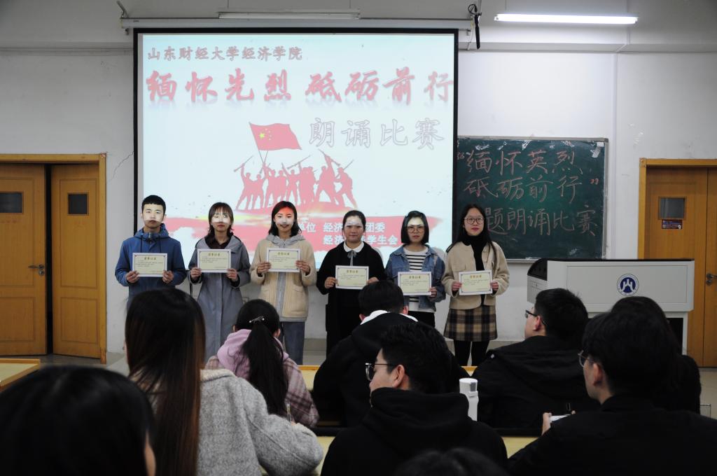 经激烈比拼,17级经济学一班郭奉琳荣获一等奖,18级经济学四班王文静、18级经济学五班徐晓宇荣获二等奖,17级资源与环境经济学二班孙子奇、18级经济学一班李聪聪、18级经济学五班安淼淼荣获三等奖。