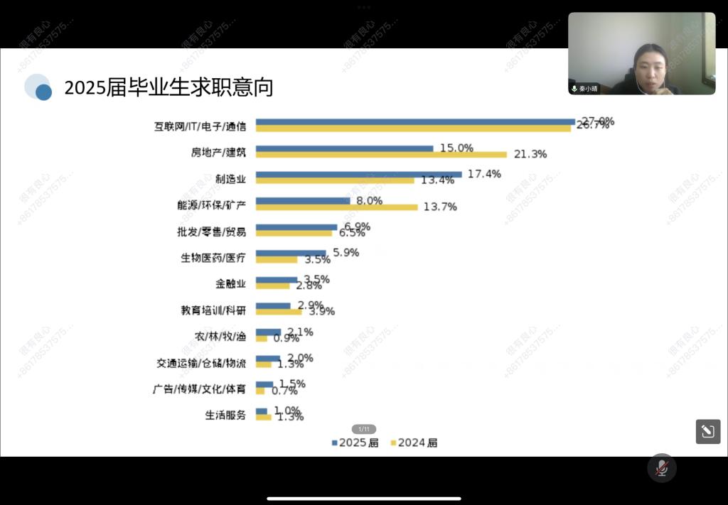 毕业班辅导员于线上召开2025届毕业生就业主题班会,2025届全体毕业生参加,会议由秦小晴主持。