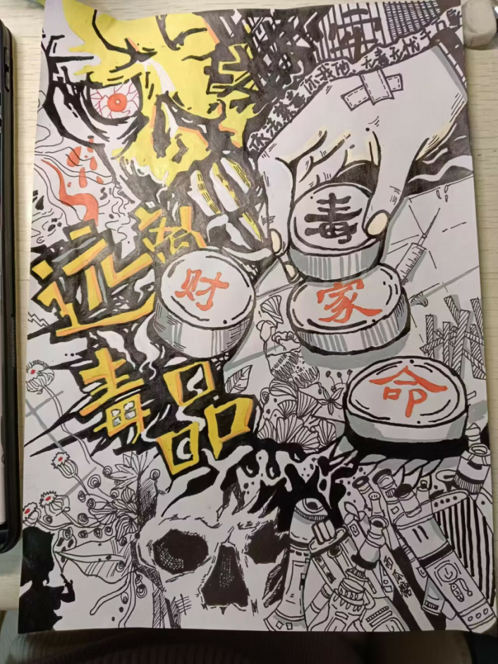 面向全体学生开展的禁毒作品征集活动得到同学们的积极响应,共收集手抄报类作品28幅,包括手抄报、海报和书法等多种形式;征文类作品49篇,包括诗歌、散文、议论文等多种文体。同学们以“健康人生、绿色无毒”为主题,或以画笔、或以文字,将毒品之于个人、社会和国家的危害展现得淋漓尽致,不仅体现出艺术造诣和文学素养,更表露出对健康绿色的无毒人生发自内心的呼唤和渴望。