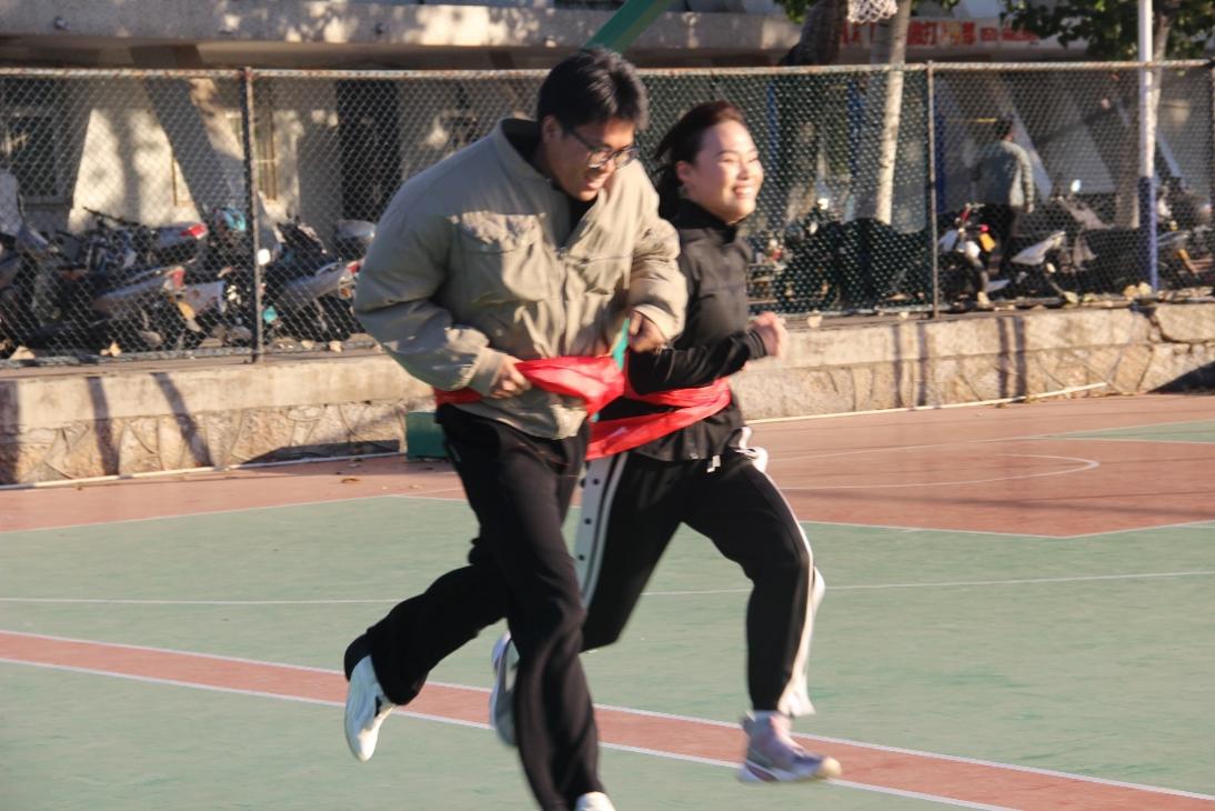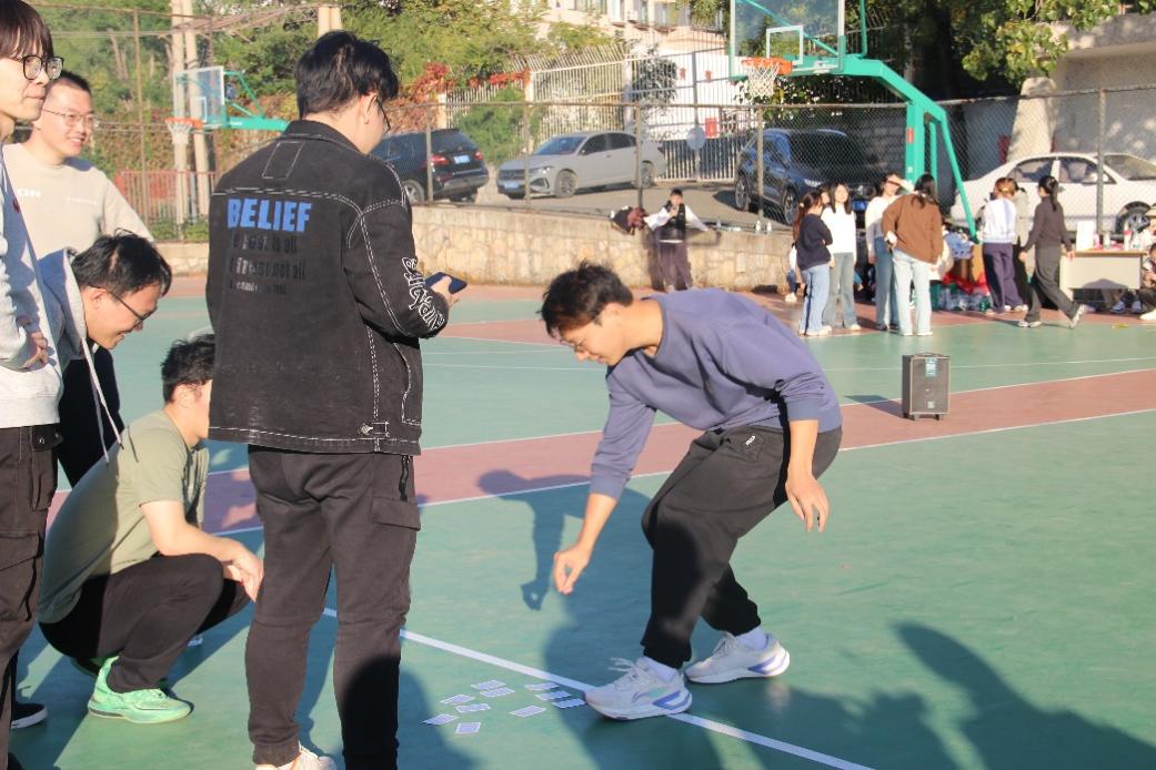本次趣味运动会共设置两人三足、一圈到底、真假抛球、达芬奇密码、腰缠万贯和正话反说六个游戏项目。运动场上,大家激情飞扬,奋力拼搏,团结协作,欢呼声加油声此起彼伏,整个赛场既紧张激烈,又充满欢声笑语。全体师生欢聚一堂,同台竞技,尽展奇思巧智,共同享受运动的快乐。“破冰游戏”成功激发了大家的团队精神和竞争意识,拉近了彼此之间的距离;“两人三足”项目中,同学们默契配合、争分夺秒,共同迈向终点;“一圈到底”环节,参赛者们灵活敏捷,动作节奏把握精准,落后的团队能迅速调整心态和竞技状态,淋漓尽致地体现创新思维和团队协作能力;“达芬奇密码”、“腰缠万贯”和“正话反说”项目则更是智力与速度的较量,动作的敏捷性、超强的记忆力、信息传递准确性以及运气缺一不可,各小组展示了不同竞技战术,比赛精彩纷呈,高潮迭起。