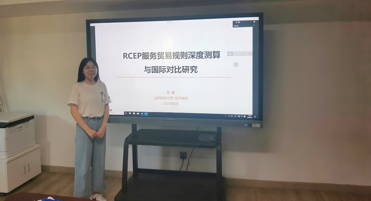 高媛博士以“RCEP服务贸易规则测算与对比研究”为题做报告。文章对RCEP、CPTPP及USMCA中服务贸易规则深度测算体系进行了优化,对比分析了三者在整体与各细分规则领域深度水平的情况,并基于分析结果提出政策建议。