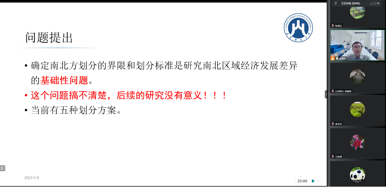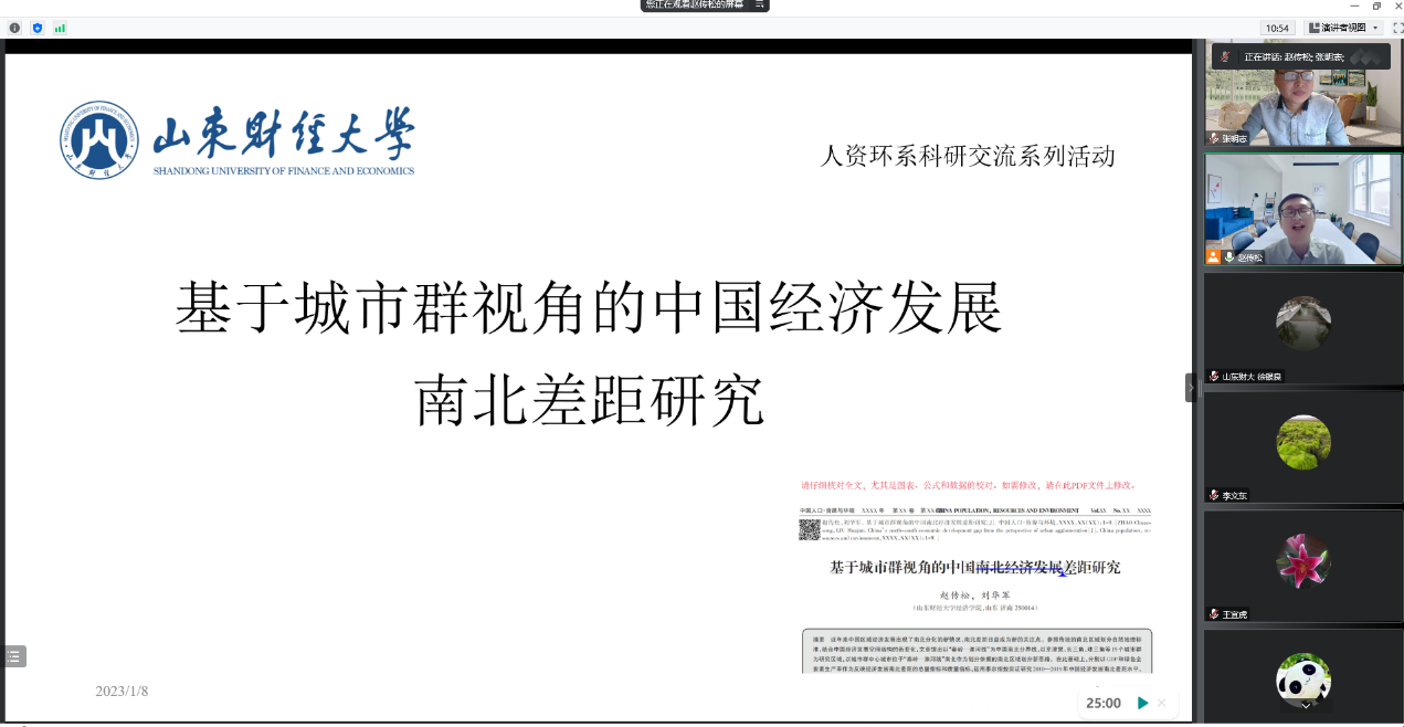 为进一步加强系部科研工作的交流与沟通,创造积极良好的科研氛围,人口、资源与环境经济学系�2023�1�8日晚在线召开科研学术交流会。会议由系副主任赵传松主持,学院副院长张明志、部分专业教师参与了此次交流会�