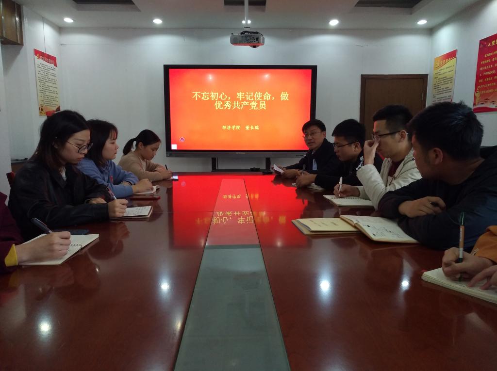 根据山东财经大学和经济学院“不忘初心,牢记使命”主题教育实施方案安排,10月31日下午,经济学院院长董长瑞在办公楼1208会议室为经济学院学生第一党支部上了一场题为“不忘初心,牢记使命,做优秀共产党员”的主题党课。