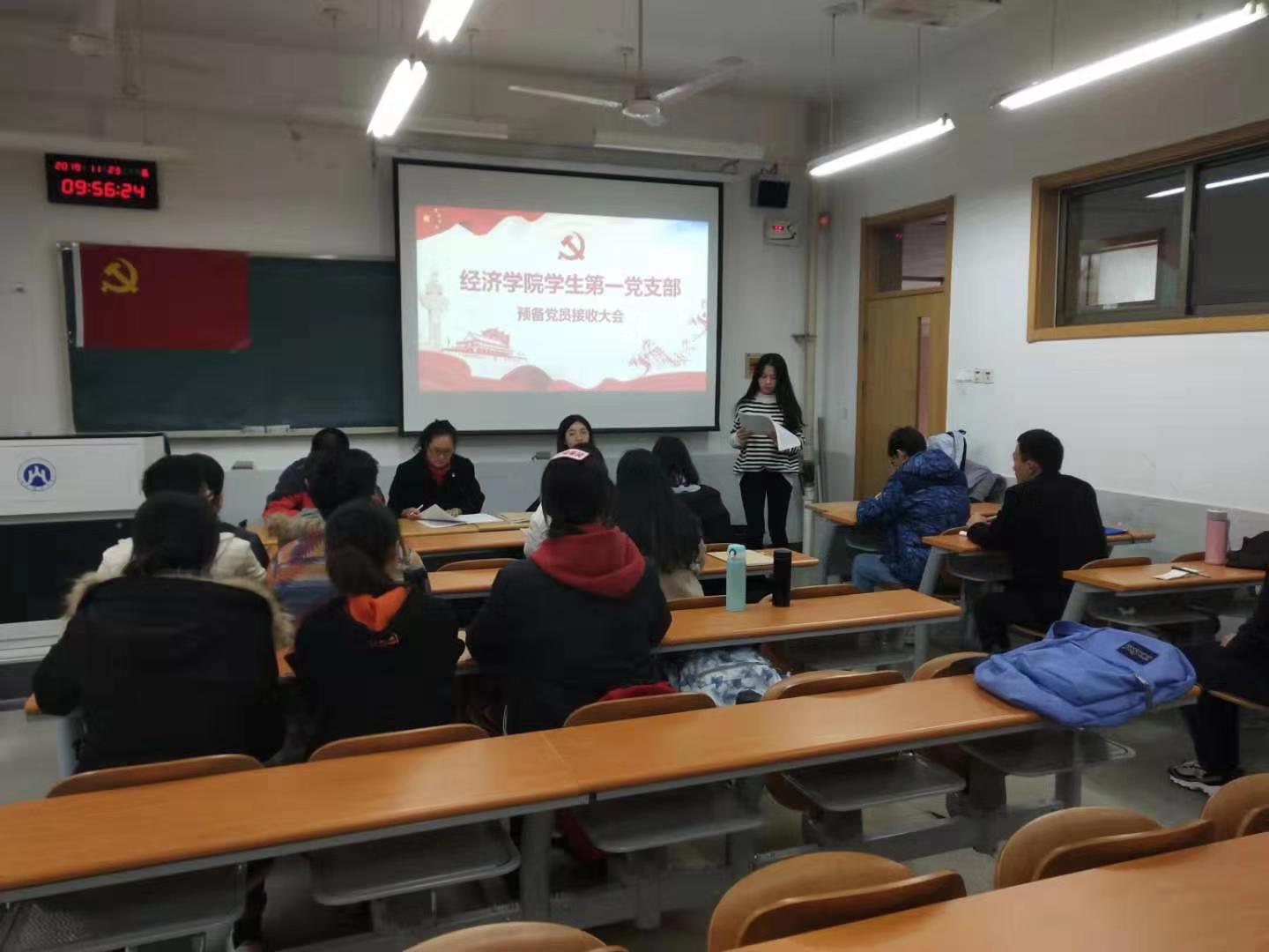 (通讯员李冰封孙俏俏)2019年11月23日——24日,经济学院7个学生党支部于舜耕校区召开接受预备党员支部大会。各支部书记主持会议,全体党员及本批发展对象参加会议。