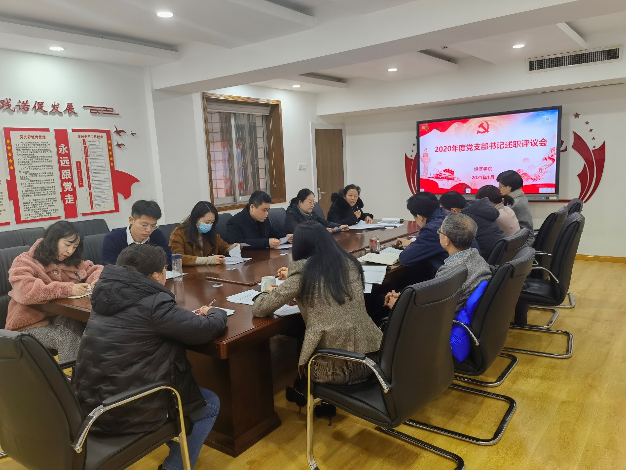 (通讯员 李冰封 朱海林)为深入学习贯彻习近平新时代中国特色社会主义思想和党的十九大精神,进一步压实党支部书记履行全面从严治党责任,履行基层党建工作责任,推动提升基层党组织政治功能和组织力,根据学校党委工作部署要求,结合学院实际,经济学院党委召开2020年度党支部书记履行全面从严治党责任和抓基层党建述职评议考核会议。院党委书记姜伟,院长谢申祥,党委副书记高峰、李冰封,副院长彭留英、齐杨,各党支部书记参加会议,会议由李冰封主持。