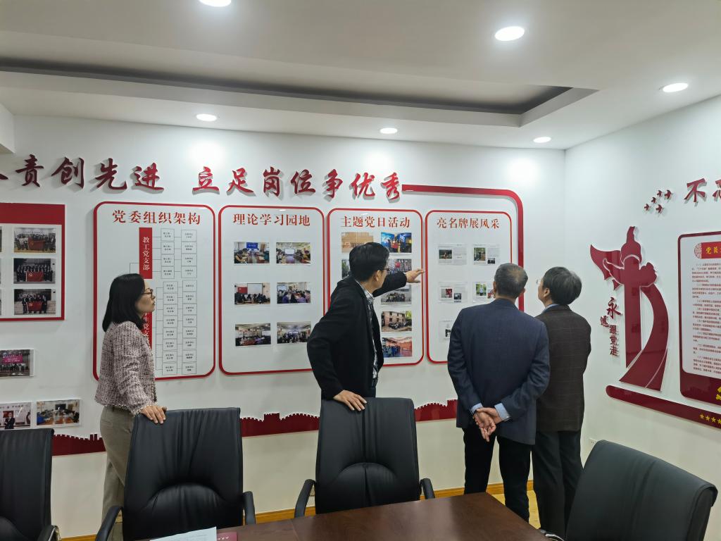 姜伟向调研组汇报了我院在学生和教师党员分类管理试点工作探索方面的特色活动和工作成效,同时也希望上级组织部门加强指导帮助,进一步把将分类管理试点工作做好。