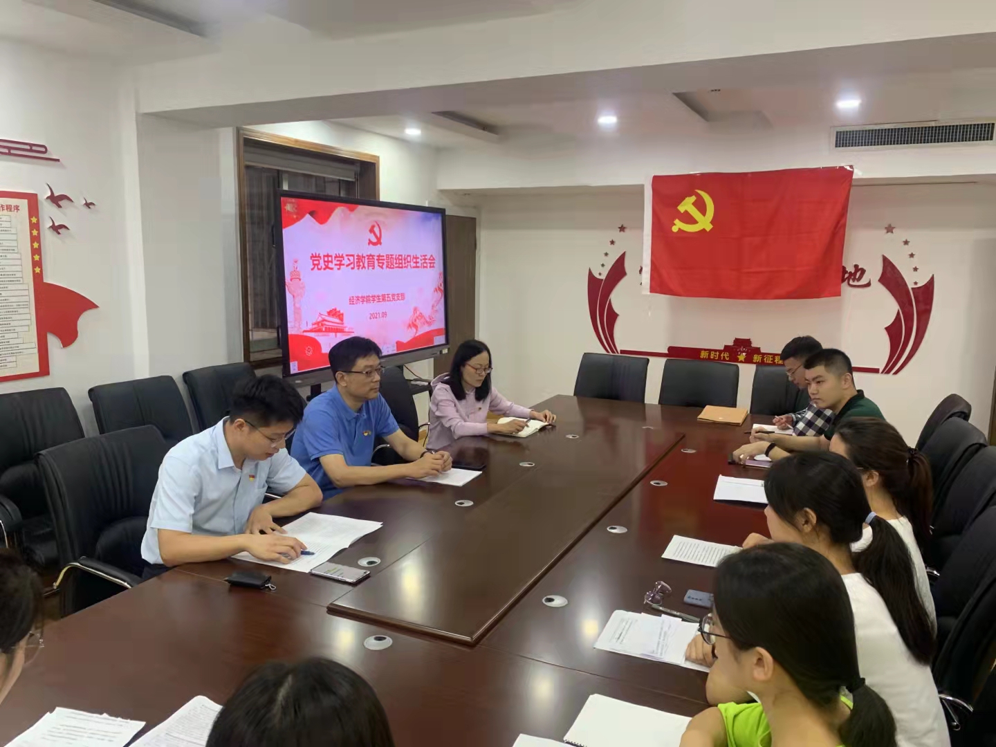 (通讯员:王琦 朱海林 李晓宁)9月6日上午,经济学院党委书记姜伟、副书记李冰封参加并指导学生第五党支部党史学习教育专题组织生活会,支部全体党员参加会议,会议由学生第五党支部书记朱海林主持。