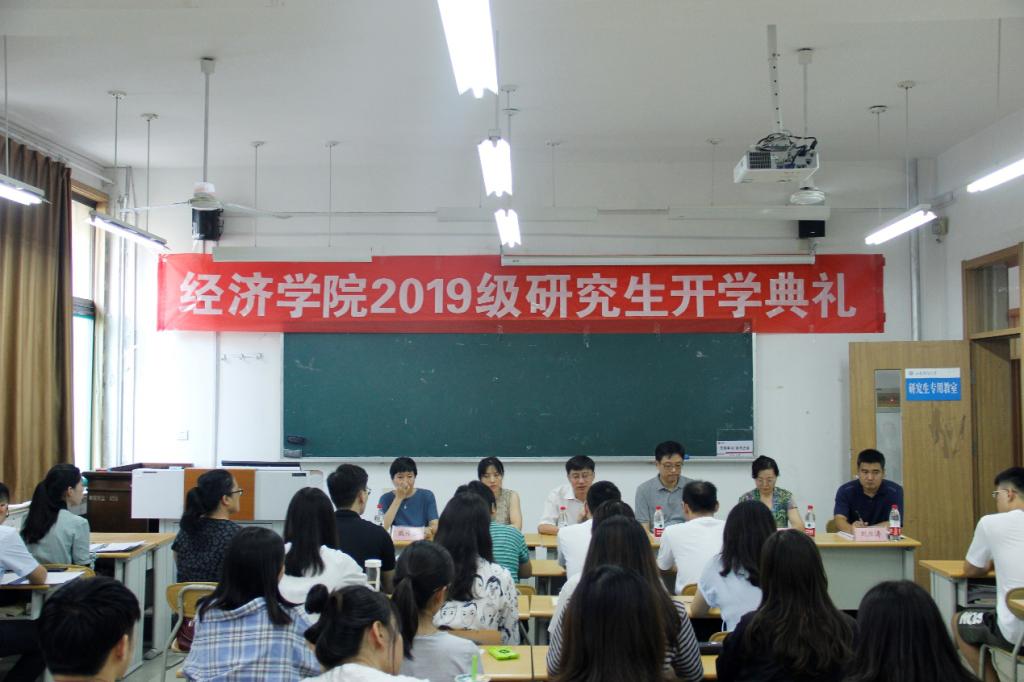 2019级研究生开学典礼于舜耕校区教学楼3303教室隆重举行,院长董长瑞,党委书记姜伟,党委副书记仵颖涛,副院长彭留英,学工办主任、研究生辅导员周新秀,研究生秘书刘应涛和教师代表藏传琴出席会议,2018级全体研究生到场参会,会议由仵颖涛主持。