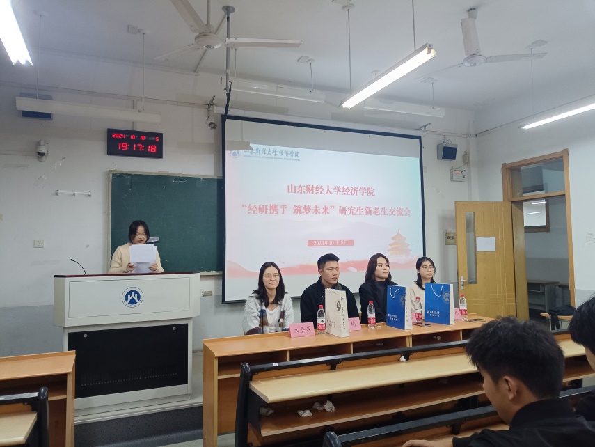 “经研携手筑梦未来”研究生新老生交流会在舜耕校区1号教学楼举行。2024级全体研究生新生参加。活动由逯启萍主持。