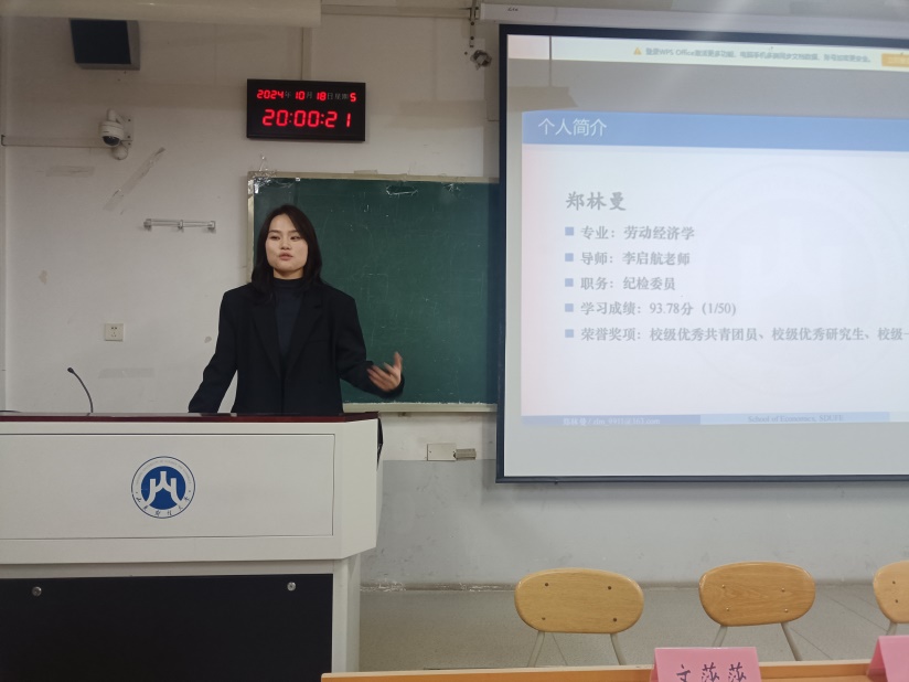 郑林曼从研究生阶段学习的特点出发,讲述了该如何制定研究生规划、如何平衡好课堂学习与科研活动等问题。她着重强调硕士研究生应当明确自己的读研动机,科学设立学业规划的长期目标。她认为硕士研究生应当通过学习科研软件、参加学术会议、整理学习资料等方式来提高自己的科研能力和效率;可通过运动等方式缓解学习与科研压力,并为同学们更好更快适应研究生生活提出良好建议。