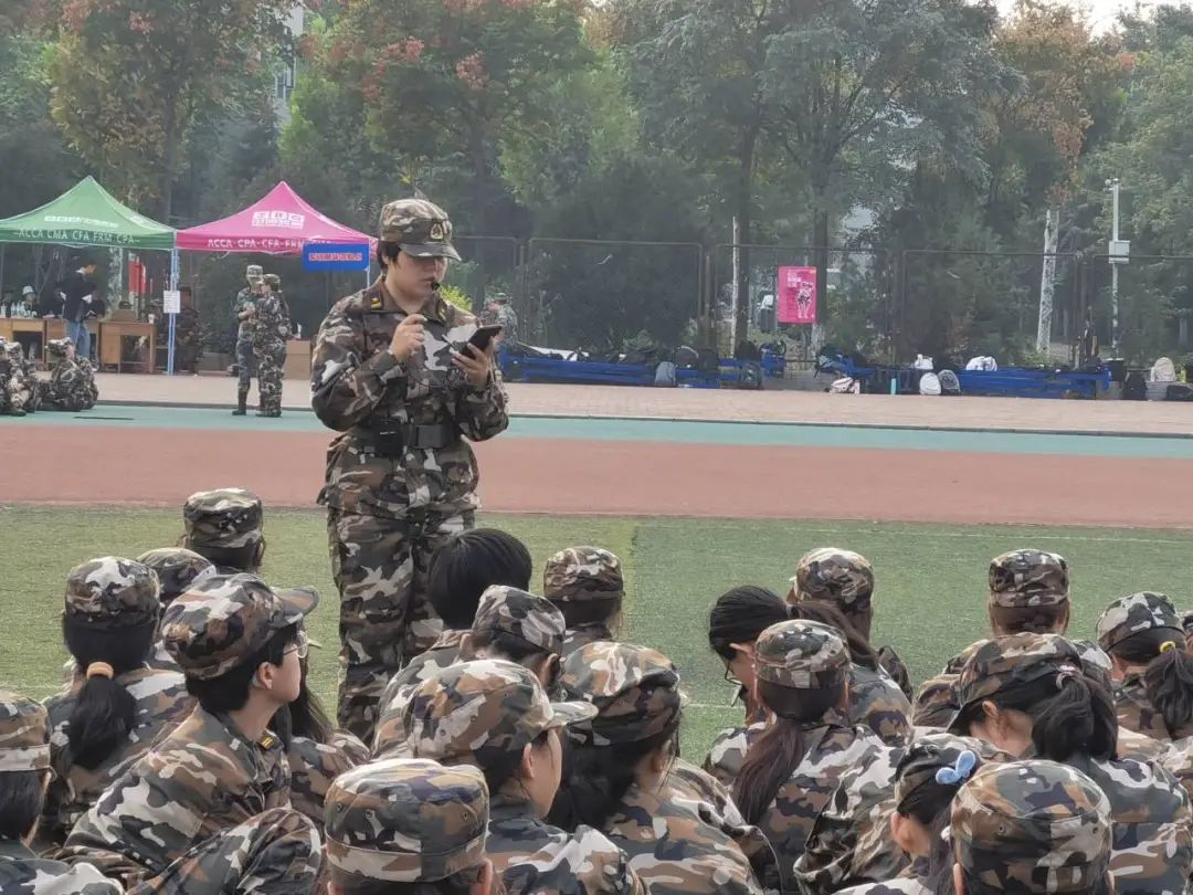 A:昨天下雨的时候,本来是在站军姿的,结果雨越下越大,教官就让我们到帐篷下面站着。这个时候教官就带着我们唱歌,一直以来我对军歌的印象都是很刻板的,但是这次教官唱的是电影《八佰》的插曲,让我觉得教官也挺fashion的。