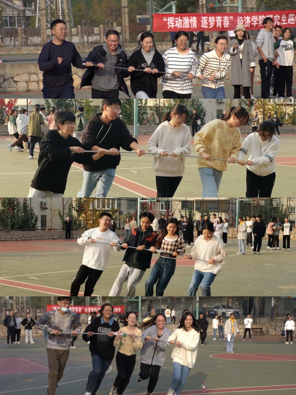 本次趣味运动会共设赶小猪、企鹅漫步、象鼻子、旋风跑、毽子接力、五人六足等六个游戏项目。各个项目轻松有趣,不仅可以锻炼同学们身体协调能力,更能培养大家团结协作的精神。赛场上,加油、欢呼、喝彩声此起彼伏,优势队伍一鼓作气,落后队伍锲而不舍。每一位参赛者都在全力以赴,每一支参赛队伍都在团结拼搏,生动展现了新时代研究生顽强拼搏、永不言弃的青春力量。