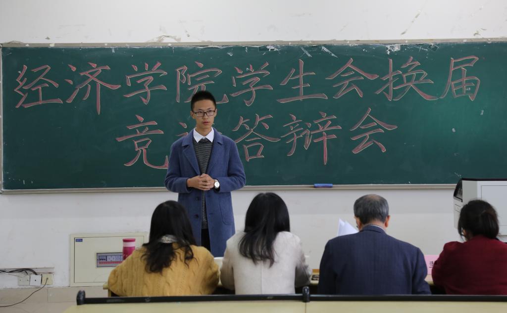 于圣井校区敏行楼召开学生会换届竞选答辩会。党委副书记高峰,党委专职组织员李冰封,团委书记付雯,院就业办主任裴斐,辅导员王琦、朱海林,第七届学生会主席团成员以及各班学生代表出席会议并担任评委,2017级、2018级共114名候选人参加答辩。