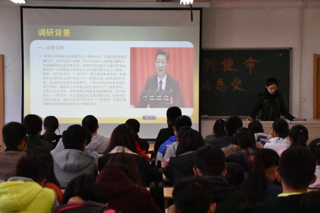 三位实践调研团队负责人分享了调研经验和心得。“济南市家庭农场经营模式及其优化”团队负责人付雅云介绍了团队成员结合国家加快农业现代化建设的政策背景,对家庭农场基本营销模式和发展特点的调研情况。张乐和杨家超重点介绍了实践调研的前期立项和调研方法的选择问题。