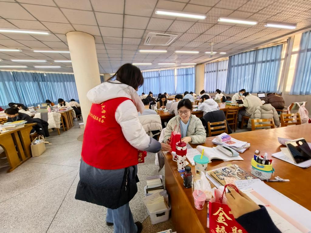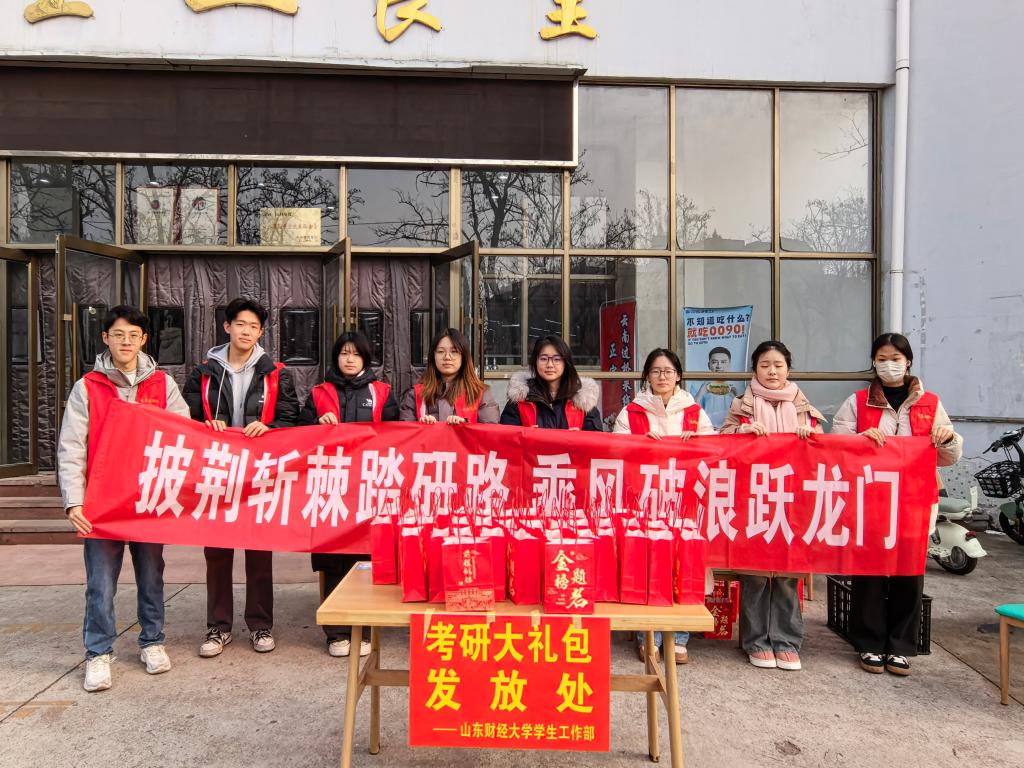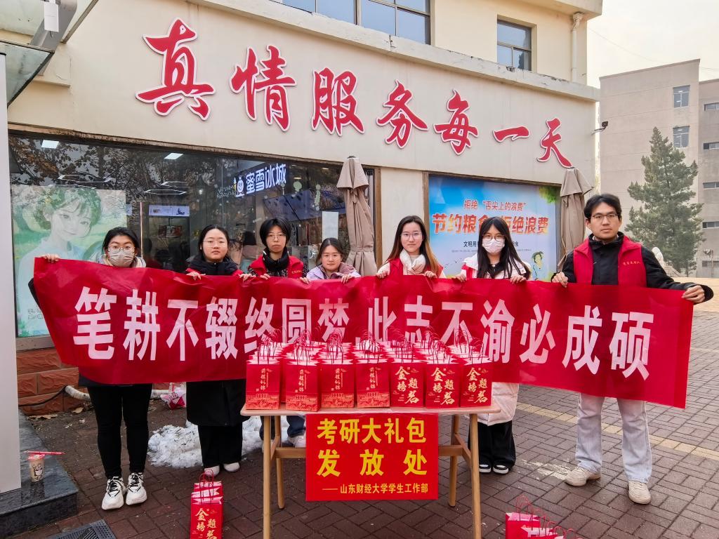 “能为学长学姐的考研路添一份力,特别有意义!”参与活动的志愿者难掩热忱,“希望这份礼包,能成为他们备考路上的动力,照亮前行之路。”而这份温暖也迅速在考研学子中传递,社交媒体上满是真挚感言:“走廊背书回来,书桌旁多了份红彤彤的礼包,瞬间被戳到。”“最近压力较大,这份意外的关怀让我开心了许久,爱在山财!”“寒冬里收到学校的暖心礼包,心里特别感动。这份关怀让我们感受到了牵挂与鼓励,也让我们更有信心坚持下去。”……朴实的话语里,满是被关怀的动容与冲刺的决心。