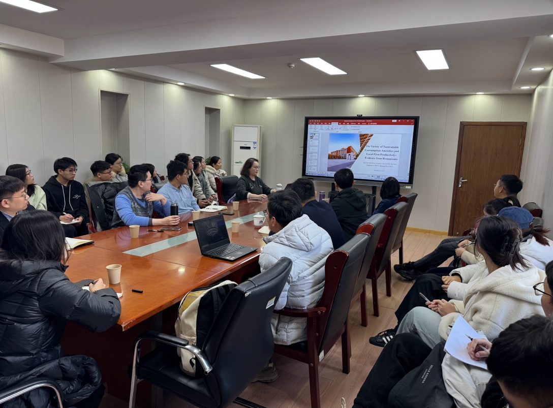 报告结束后,郭涛老师对师生提出的问题一一进行解答,此次报告立足不可贸易消费便利设施的多样性与企业生产率的交叉视角,内容丰富,逻辑清晰,具有很强的理论意义和现实启发,为师生提供了前沿学术视野,拓宽了师生们的科研思路。